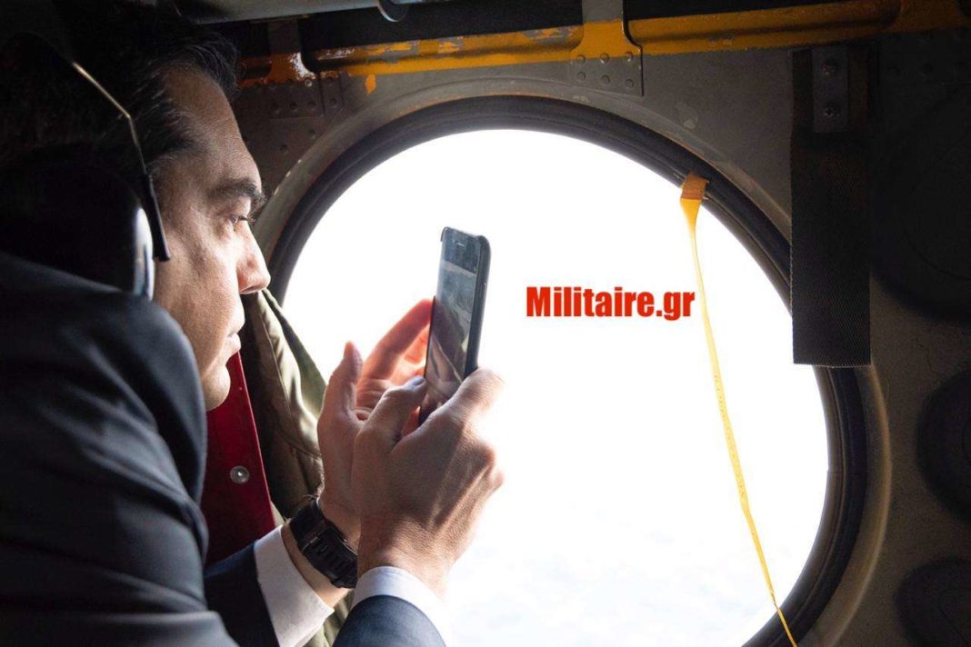 Φωτογραφία-ντοκουμέντο που δείχνει τον Αλέξη Τσίπρα να τραβά φωτογραφίες και βίντεο μέσα από το Σινούκ που τον μετέφερε στο Αγαθονήσι ήρθε στη δημοσιότητα.