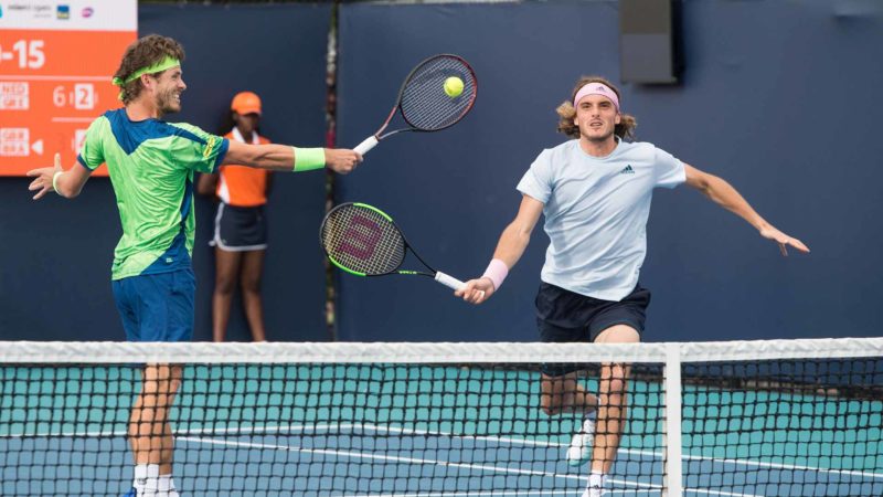 Τα… σπασμένα του αποκλεισμού του από τον Ντένις Σαποβάλοφ φαίνεται πως βγάζει ο Στέφανος Τσιτσιπάς στο διπλό του Miami Open.