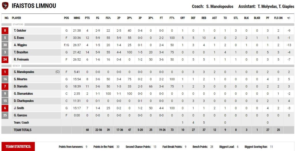 Ο Δημήτρης Σταμάτης στο τρίτο δεκάλεπτο πήρε το όπλο του και με συνολικά 11 πόντους έβαλε μπροστά τον Ήφαιστο (67-70). Στην τελευταία περίοδο οι δύο ομάδες έδωσαν σπουδαία μάχη, με τους γηπεδούχους τελικά να κάνουν την ανατροπή και να παίρνουν τη νίκη με 73-68.