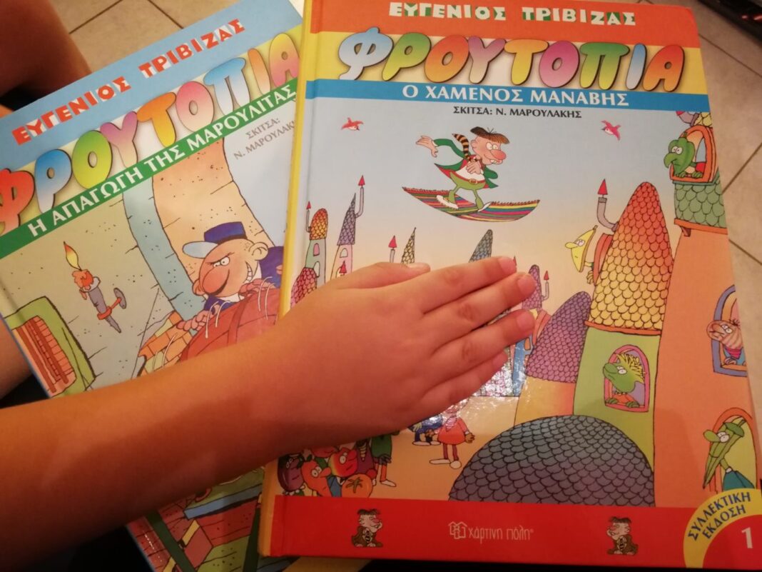 Κι έτσι, σε έναν θεόχοντρο χάρτινο φάκελο και με τη… διακριτική απειλή «να μου τα επιστρέψετε όπως σας τα έδωσα, ε;» (ο δανεισμός έγινε χάρη στη 30χρονη φιλία που ενώνει κουμπάρο και πατέρα παιδιού, διαφορετικά η πρόσβασή μας στη Φρουτοπία θα σταματούσε σε μια φευγαλέα ματιά στα εξώφυλλα) μπήκε στο σπίτι μας για ολιγοήμερη φιλοξενία η ολοκληρωμένη σειρά του Τριβιζά. Με 36 τεύχη αδιάβαστα και την αγωνία στο κατακόρυφο, επί 4 ημέρες με το ζόρι βρίσκαμε χρόνο για τουαλέτα. Διαβάζαμε πριν το σχολείο, μετά το σχολείο, την ώρα του φαγητού (αρκεί να μην ήταν λαδερό ή κοκκινιστό γιατί καραδοκούσε η αιωρούμενη απειλή του Μιχάλη), πριν τον ύπνο… Οφείλω να ομολογήσω ότι και εγώ, που ως παιδί δεν παρακολουθούσα φανατικά το παιδικό (αν και η μελωδία παίζει και τώρα στο κεφάλι μου σα να ήταν χθες) μοιράστηκα την αγωνία του γιου μου και εξεπλάγην με τις ανατροπές, ειδικά στο σημείο που σε μανάβη μεταμορφώθηκε ακόμα και ο…. Όχι, δε σας λέω, να το διαβάσετε!
