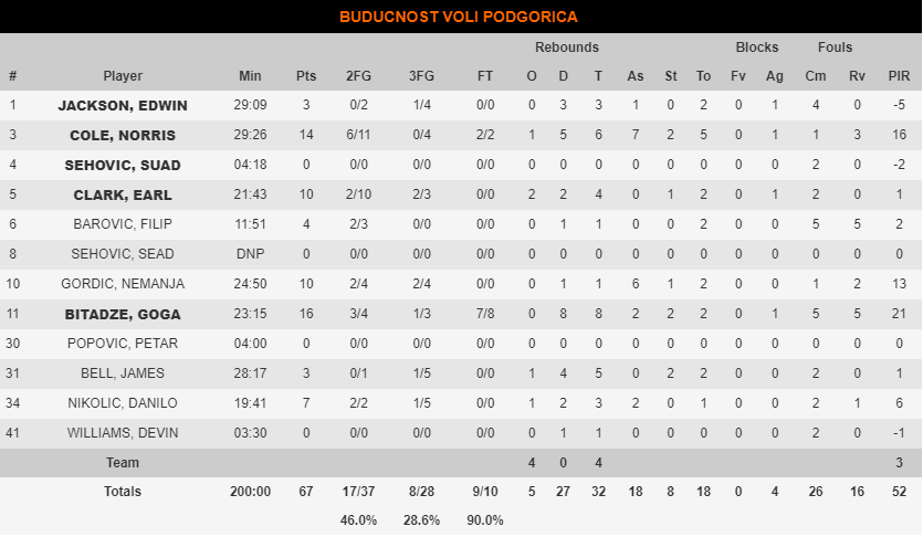 Ο Μπιτάτζε ήταν εξαιρετικός στο πρώτο ημίχρονο (12 πόντοι) και έκανε μεγάλη ζημιά στον Παναθηναϊκό (26-26). Ο Νόρις Κόουλ πήρε τη σκυτάλη και με καλάθι έβαλε την Μπουντούτσνοστ μπροστά ύστερα από ώρα (30-32).