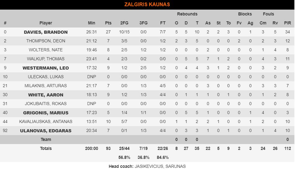 Στα τελευταία λεπτά δεν άλλαξε κάτι. Η Ζαλγκίρις πήρε τη νίκη με 93-86 και πήρε την πρόκριση στα playoffs και πέταξε εκτός τον Ολυμπιακό