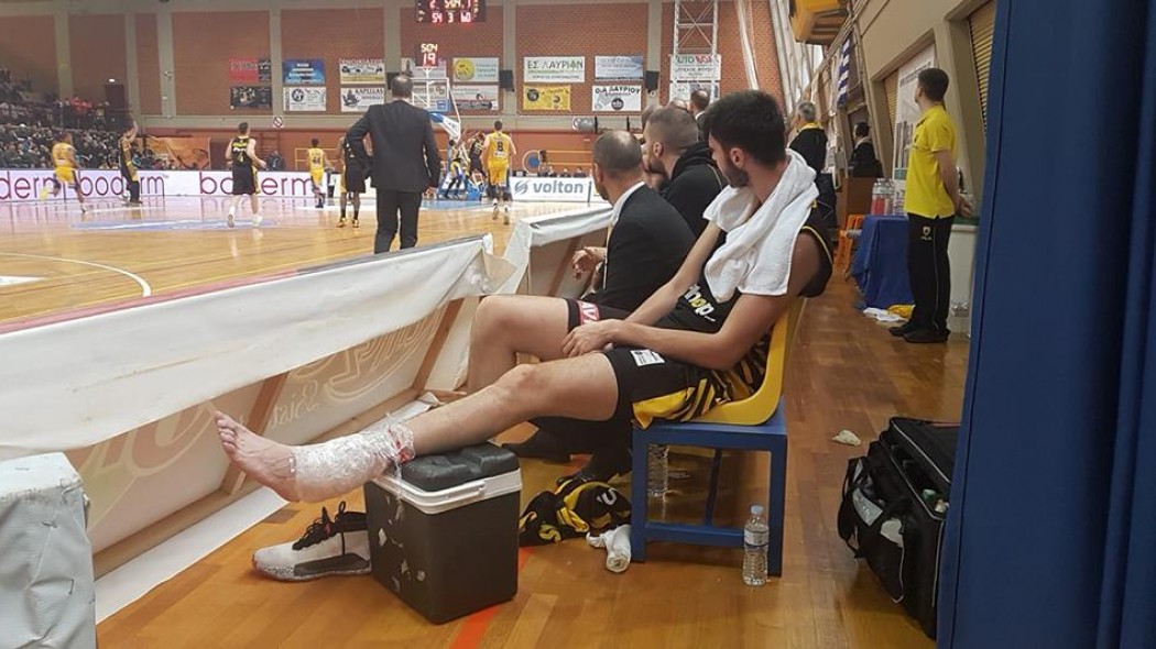 Ο Έλληνας σέντερ χτύπησε στο αριστερό του πόδι στο ξεκίνημα της τρίτης περιόδου και δεν αγωνίστηκε μέχρι το φινάλε. Ο Τσαλμπούρης θα υποβληθεί σε μαγνητική, για να διαπιστωθεί το μέγεθος της ζημιάς.