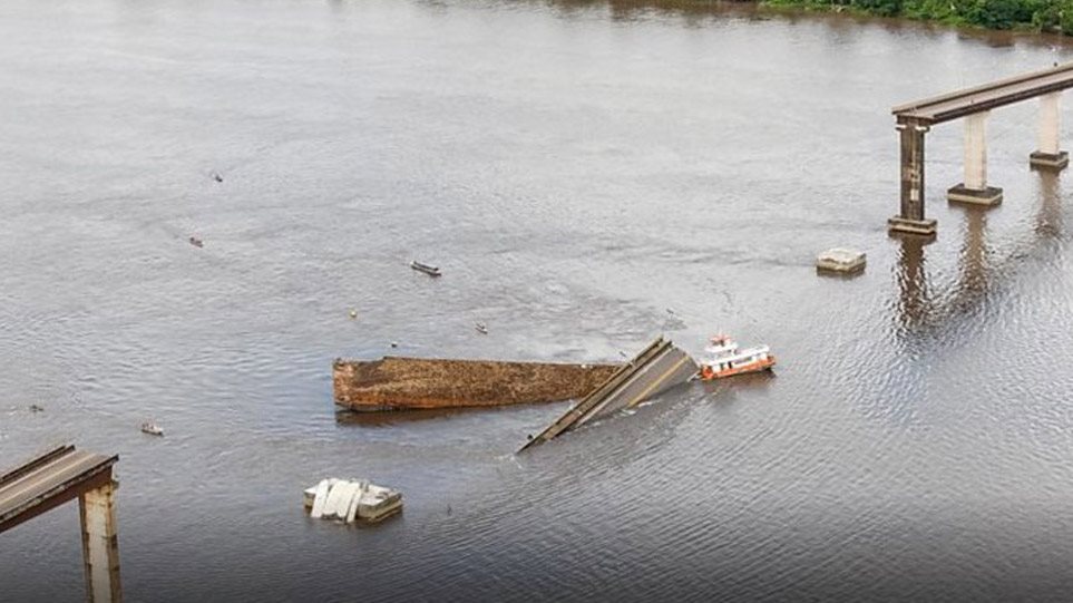 Πορθμείο προσέκρουσε σε γέφυρα στο Παρά της Βραζιλίας, με αποτέλεσμα ένα πολύ μεγάλο μέρος της, μήκους περίπου 200 μέτρων, να πέσει τον ποταμό Μότζου.
