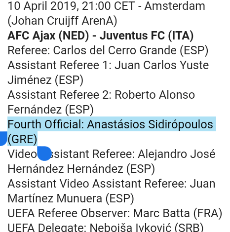 Σπουδαία νέα για τον Τάσο Σιδηρόπουλο, ο οποίος ορίστηκε ως τέταρτος από την UEFA στον προημιτελικό ανάμεσα σε Άγιαξ και Γιουβέντους.