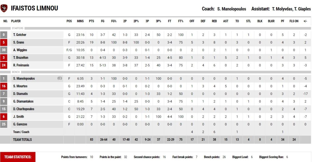 Μεγάλη νίκη – παραμονής πανηγύρισε η Κύμη, η οποία επικράτησε του Ήφαιστου Λήμνου με 90-83. Το παιχνίδι ήταν πραγματικό ντέρμπι και κρίθηκε στα τελευταία λεπτά. Οι γηπεδούχοι εκμεταλλεύτηκαν την ευστοχία τους στις βολές και κατάφεραν τελικά να πάρουν το ροζ φύλλο αγώνα. Η ομάδα του Ισίδωρου Κουτσού κράτησε σε απόσταση μία νίκης το Ρέθυμνο και κρατάει την τύχη στα χέρια της.