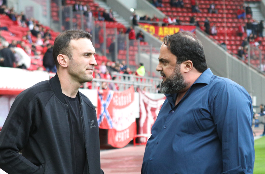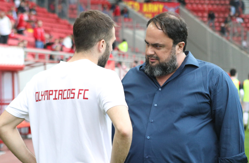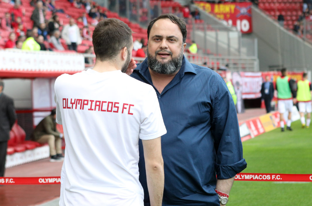 Ο Βαγγέλης Μαρινάκης πριν την έναρξη του ματς του Ολυμπιακού με την Ξάνθη βρέθηκε στον αγωνιστικό χώρο του γηπέδου και είχε την ευκαιρία να τα πει με τους παίκτες της ομάδας του Πειραιά.
