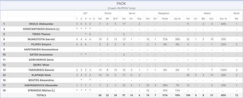 Συγκεκριμένα, η ομάδα των Βορείων προαστίων έβαλε δύσκολα στον ΠΑΟΚ στα τρία από τα τέσσερα σετ. Κρατώντας την υποδοχή με τον Κάπελλα κι έχοντας σε καλή μέρα Λάανε και Χαντ έβαλε δύσκολα από τη γραμμή του σέρβις στον «Δικέφαλο του Βορρά», ο οποίος είχε συγκριτικά με τα προηγούμενα ματς σε κακή μέρα τον Σαφράνοβιτς.