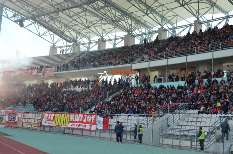 Μερικό ακρωτηριασμό εξαιτίας κροτίδας που έσκασε στα χέρια της υπέστη 30χρονη φίλαθλος του Ολυμπιακού Βόλου το απόγευμα της Κυριακής στο Πανθεσσαλικό Στάδιο του Βόλου.