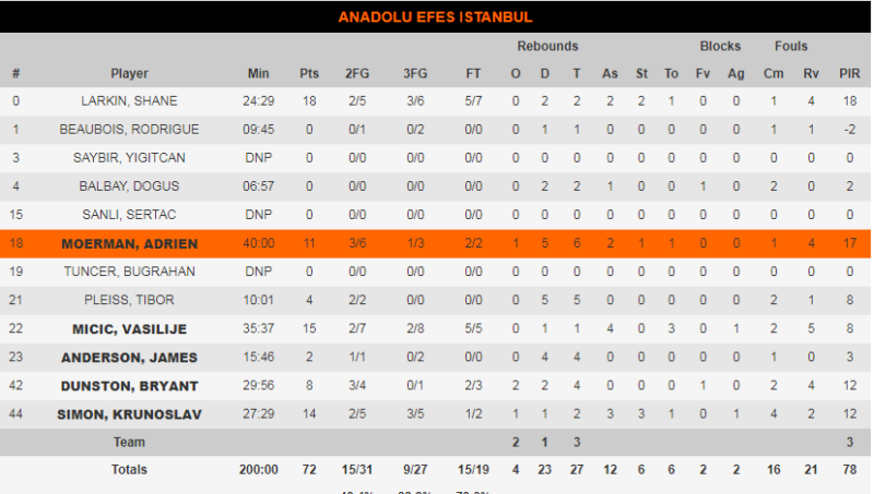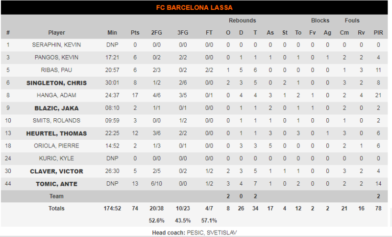 Μπαίνοντας στην τελική ευθεία της αναμέτρησης, η Μπαρτσελόνα με δύο τρίποντα του «ασταμάτητου» Χάνγκα και του Πάνγκος κατάφερε να πάρει μια διαφορά 7 πόντων. Η Εφές ωστόσο με μια «αντεπίθεση» διαρκείας, δυόμισι λεπτά πριν το τέλος πέρασε μπροστά με 72-71. 33 δευτερόλεπτα πριν το τέλος και με το σκορ στο 72-72, ο Ούγγρος φόργουορντ των φιλοξενούμενων διαμόρφωσε το τελικό 74-72, με τον Σιμόν να μην μπορεί να δώσει τη νίκη στην ομάδα του μιας και το τρίποντο που επιχείρησε στα 12 δευτερόλεπτα βρήκε σίδερο.