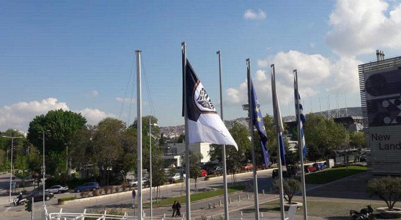 Με άδεια του δημάρχου, Γιάννη Μπουτάρη από το πρωί στο δημαρχείο «κυματίζει» η σημαία του ΠΑΟΚ. Μάλιστα με εντολή του ίδιου του δημάρχου αναμένεται να φωταγωγηθεί το βράδυ η Θεσσαλονίκη, προς τιμή του «δικεφάλου του Βορρά».