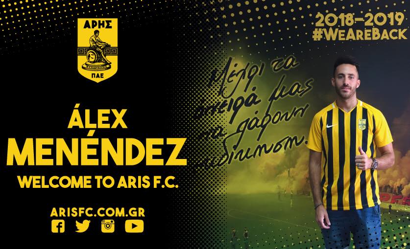 «Η ΠΑΕ ΑΡΗΣ ανακοινώνει την απόκτηση του Alejandro (Alex) Menendez Diez. O 26χρονος Ισπανός πλάγιος μεσοαμυντικός, που υπέγραψε διετές συμβόλαιο συνεργασίας με την ομάδα μας, γεννήθηκε στις 15 Ιουλίου 1991.