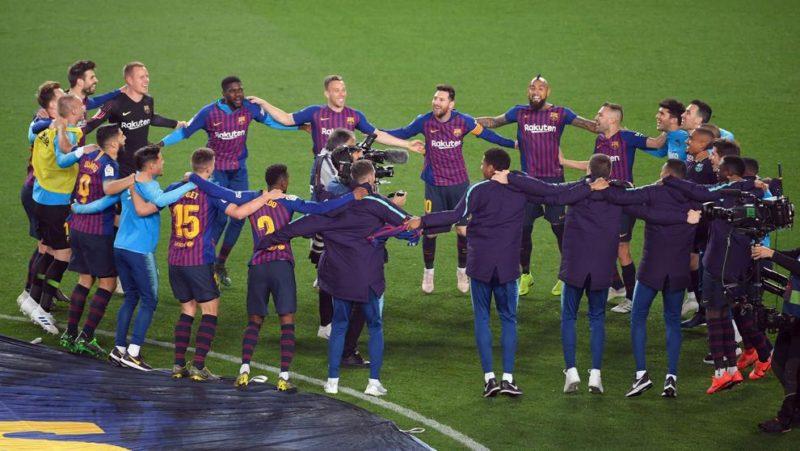 «Campeones, campeones» ήταν το σύνθημα που ακούστηκε όσο κανένα το βράδυ της Κυριακής στο Καμπ Νου, με τους παίκτες και τους οπαδούς της Μπαρτσελόνα να πλέουν σε πελάγη ευτυχίας, πανηγυρίζοντας την κατάκτηση του πρωταθλήματος.