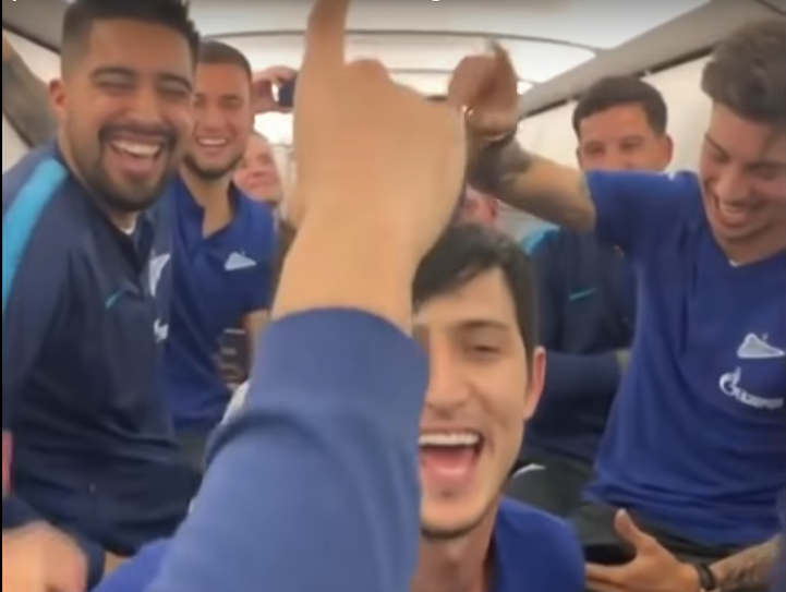 Όπως ήταν φυσικό, οι ποδοσφαιριστές της Ζενίτ, ξέσπασαν σε πανηγυρισμούς, πετώντας στα ουράνια. Και κυριολεκτικά και μεταφορικά.