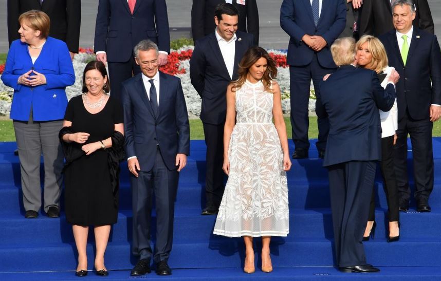 Οι υπόλοιποι ηγέτες έμειναν να κοιτούν με θαυμασμό μικρού παιδιού την Πρώτη Κυρία των ΗΠΑ. Χαρακτηριστική είναι η φωτογραφία με τον πρόεδρο της Κομισιόν, Ζαν-Κλοντ Γιούνκερ, τον πρωθυπουργό της Πορτογαλίας, Αντόνιο Κόστα και τον πρωθυπουργό της Ουγγαρίας, Βίκτορ Ορμπαν. Ο πρόεδρος της Κομισιόν, γνωστός για την αγάπη του στο «ωραίο φύλο» κοιτάζει με ένα βλέμμα στα όρια του λάγνου, ο Πορτογάλος πρωθυπουργός φανερά θαυμάζει την Πρώτη Κυρία των ΗΠΑ, ενώ δύσκολα μπορεί να αποκρυπτογραφήσει κανείς το βλέμμα του Ούγγρου πρωθυπουργού.