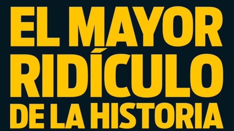 Με αφορμή τον αποκλεισμό των «μπλαουγκράνα», η ισπανική «Sport» στο σημερινό (8/5) της πρωτοσέλιδο «κατακεραυνώνει» την ομάδα του Ερνέστο Βαλβέρδε. Ποιο συγκεκριμένα το πρώτο φύλλο της εφημερίδας φέρει τον τίτλο: «Η μεγαλύτερη ξεφτίλα στην ιστορία». Παράλληλα «ρίχνει» και τα βέλη της στον Ισπανό τεχνικό αναφέροντας πως: «Οι πρωταθλητές είναι πολύ μεγάλοι για τον Βαλβέρδε».