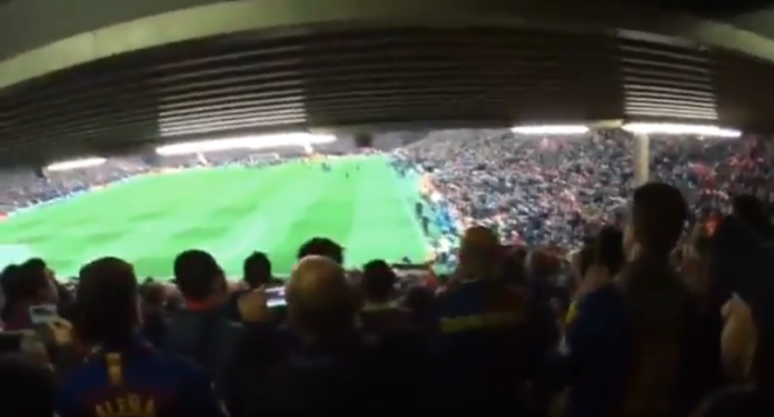 Barca fans’ reaction to the post match YNWA at Anfield. Brilliant!!! pic.twitter.com/fyxPERm4iF
