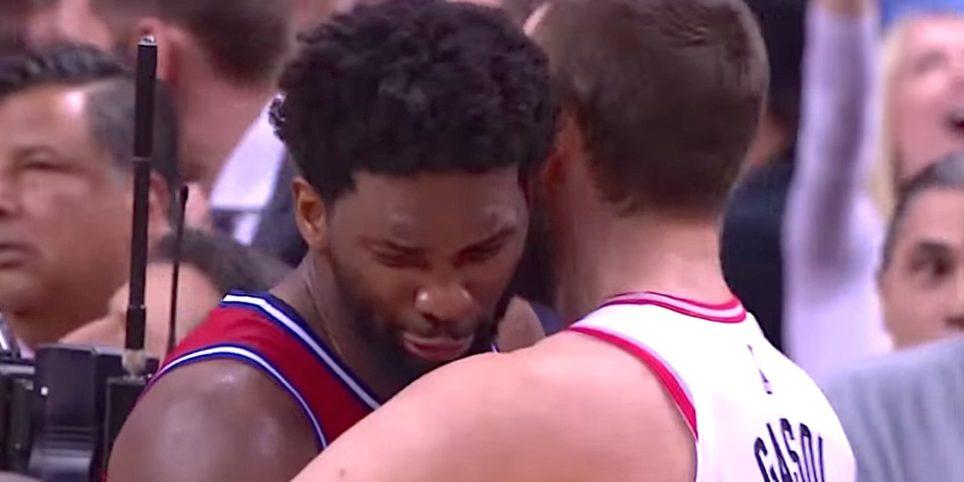 Ο Γκασόλ προσπάθησε να τον παρηγορήσει, με τον ηγέτη των 76ers να κατευθύνεται κλαίγοντας στα αποδυτήρια, όπου έπεσε στην αγκαλιά της κοπέλας του.