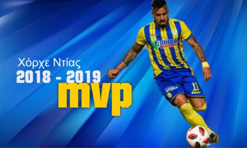 Όπως ανακοίνωσε η ΠΑΕ Παναιτωλικός, ο Χόρχε Ντίας αναδείχθηκε κορυφαίος ποδοσφαιριστής της ομάδας για τη σεζόν 2018-19, μέσω ψηφοφορίας στην οποία έλαβαν μέρος οι εκπρόσωποι των ΜΜΕ που καλύπτουν το ρεπορτάζ του συλλόγου από το Αγρίνιο.