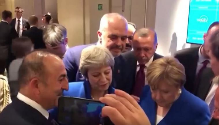 Γύρω από τον Τούρκο υπουργό Εξωτερικών βρέθηκαν η – άμεσα ενδιαφερόμενη – πρωθυπουργός της Βρετανίας Τερέζα Μέι, η καγκελάριος της Γερμανίας Ανγκελα Μέρκελ, ο Τούρκος πρόεδρος, Ρετζέπ Ταγίπ Ερντογάν και ο πρωθυπουργός της Αλβανίας Εντι Ράμα.