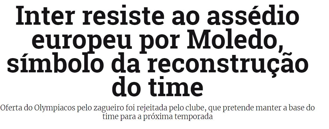 Η Ιντερνασιονάλ απ’ ότι φαίνεται και με βάση τα όσα γράφτηκαν και την Παρασκευή στο «gauchazh.clicrbs.com.br» δεν δείχνει διατεθειμένη να παραχωρήσει τον ποδοσφαιριστή, ενώ μάλιστα φέρεται αποφασισμένη να τον διατηρήσει στις τάξεις της και στην ερχόμενη αγωνιστική περίοδο καθώς ο ίδιος αποτελεί τον βασικό πυλώνα στην αγωνιστική εξέλιξη όχι μόνο του έτερου κεντρικού αμυντικού Βίκτορ Κουέστα, αλλά και στη συνολική εικόνα του συλλόγου στο χορτάρι.