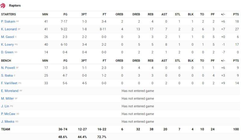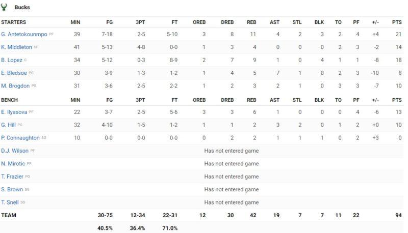 Ο Γιάννης Αντετοκούνμπο βοήθησε όσο μπορούσε τους Μπακς, ολοκληρώνοντας την αναμέτρηση με 21 πόντους, 11 ριμπάουντ, 4 ασίστ και 3 τάπες. Για τους Ράπτορς, ο Λέοναρντ πραγματοποίησε μια ακόμα «μεγάλη» εμφάνιση με 27 πόντους, 17 ριμπάουντ, 7 ασίστ, 2 κλεψίματα και 2 τάπες.