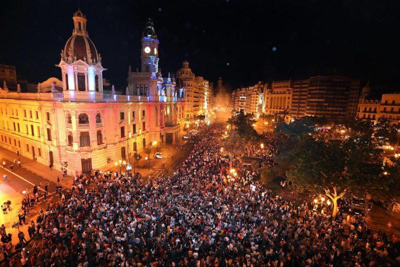 Την κατάκτηση του κυπέλλου Ισπανίας πανηγυρίζει από το βράδυ του Σαββάτου (25/5) η Βαλένθια, μετά τη νίκη της επί της Μπαρτσελόνα με 2-1 στον τελικό. Χιλιάδες φίλαθλοι της ομάδας βγήκαν στους δρόμους της πόλης προκειμένου να γιορτάσουν το πρώτο τρόπαιο των «νυχτερίδων» μετά το 2008.