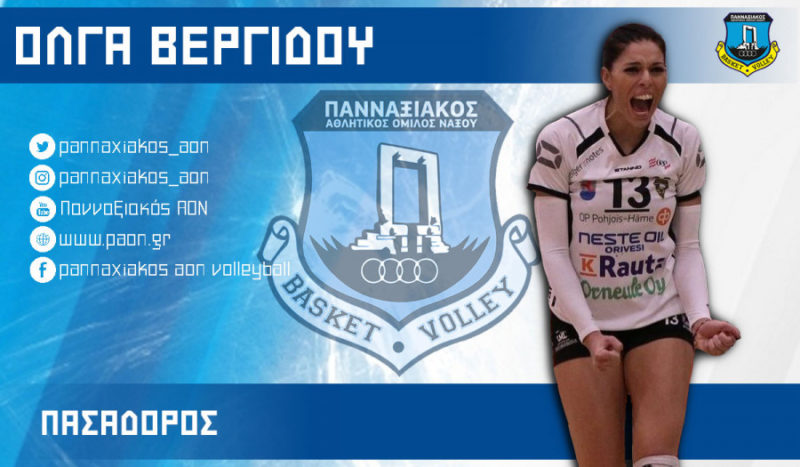 Η 27χρονη διεθνής αθλήτρια ύψους 180εκ αγωνίζεται στη θέση της Πασαδόρου και θα συμβάλλει καθοριστικά στην προσπάθεια για την επιτυχία του Πανναξιακού στις εγχώριες διοργανώσεις και στην επίτευξη των στόχων της ομάδας μας. Καλωσορίζουμε την Όλγα Βεργίδου στην ομάδα μας και το νησί μας και τις ευχόμαστε υγεία και πολλές επιτυχίες».