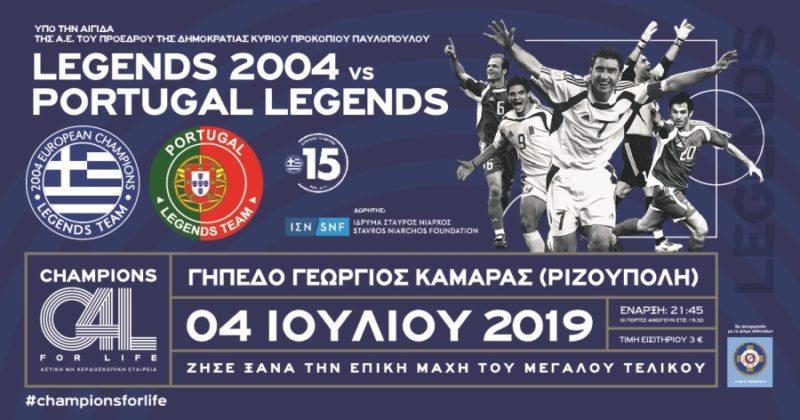 Η Αστική Μη Κερδοσκοπική Εταιρεία Champions For Life, σε συνεργασία με το Ίδρυμα Σταύρος Νιάρχος, παρουσιάζει τους Αντώνη Νικοπολίδη, Γιούρκα Σεϊταρίδη, Τραϊανό Δέλλα, Κώστα Κατσουράνη, Άγγελο Χαριστέα, Γιώργο Καραγκούνη, και όλους τους πρωταθλητές Ευρώπης 2004, σε μια μοναδική ποδοσφαιρική βραδιά, απέναντι στους Portugal Legends των Βίτορ Μπαϊα, Ντέκο, Ρικάρντο Καρβάλιο, Φερνάντο Κόουτο, Σιμάο Σαμπρόσα και άλλων σπουδαίων παικτών από εκείνη την ομάδα.