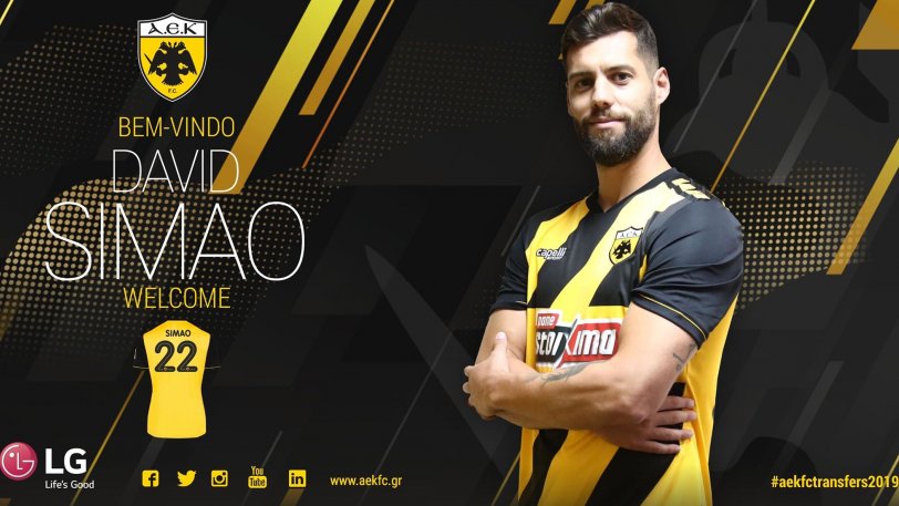 «Η ΠΑΕ ΑΕΚ ανακοινώνει την απόκτηση του Νταβίντ Σιμάο από τη βελγική Royal Antwerp FC. O 29 ετών Πορτογάλος μέσος υπέγραψε συμβόλαιο τριετούς διάρκειας με την ομάδα μας και πήρε τη φανέλα με τον αριθμό 22.