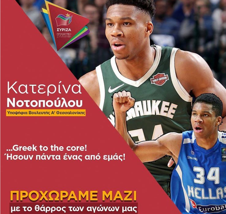 Οι αντιδράσεις που προκάλεσε η… αυτοσχέδια αφίσα του MVP του NBA Γιάννη Αντετοκούνμπο στον λογαριασμό της Κατερίνας Νοτοπούλου στο Instagram φαίνεται πως ανάγκασαν την υποψήφια βουλευτή στην Α’ Θεσσαλονίκης με τον ΣΥΡΙΖΑ να την κατεβάσει.