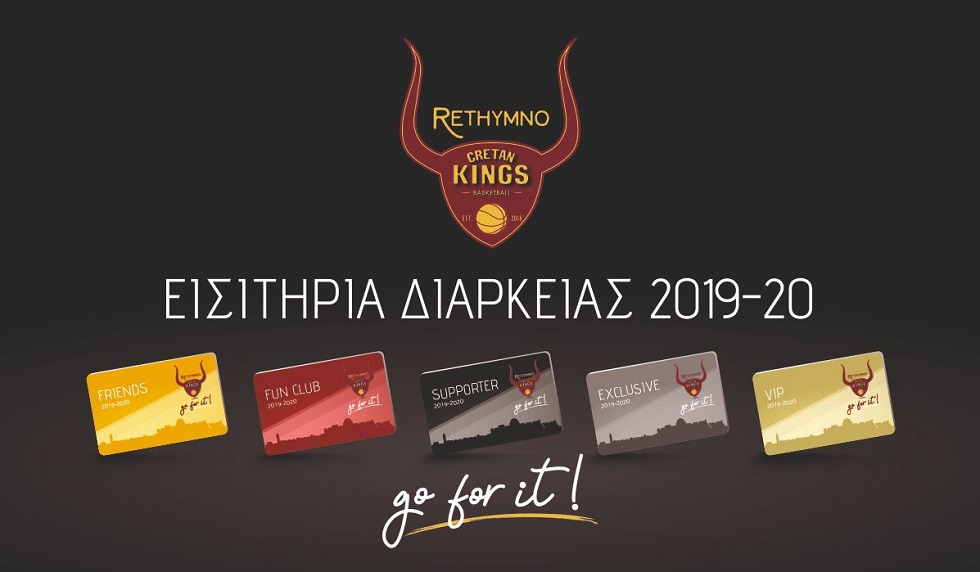 «Από σήμερα, Δευτέρα 8 Ιουλίου, ξεκινάει η διάθεση των καρτών διαρκείας για την αγωνιστική περίοδο 2019-2020, που θα βρει την ΚΑΕ Ρέθυμνο Cretan Kings για 9η συνεχόμενη χρονιά (10η συνολικά) στην Basket League και ανάμεσα στις κορυφαίες ομάδες του αθλήματος.