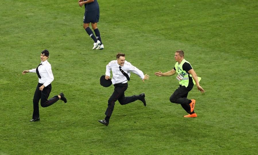 Στην πρωτοβουλία να … εισχωρήσουν στον αγωνιστικό χώρο και να κερδίσουν λίγη από τη λάμψη του τελικού του Παγκοσμίου Κυπέλου του «Λουζνίκι» ανάμεσα σε Γαλλία και Κροατία προχώρησαν τέσσερα άτομα κατά τη διάρκεια του Παγκοσμίου Κυπέλλου.