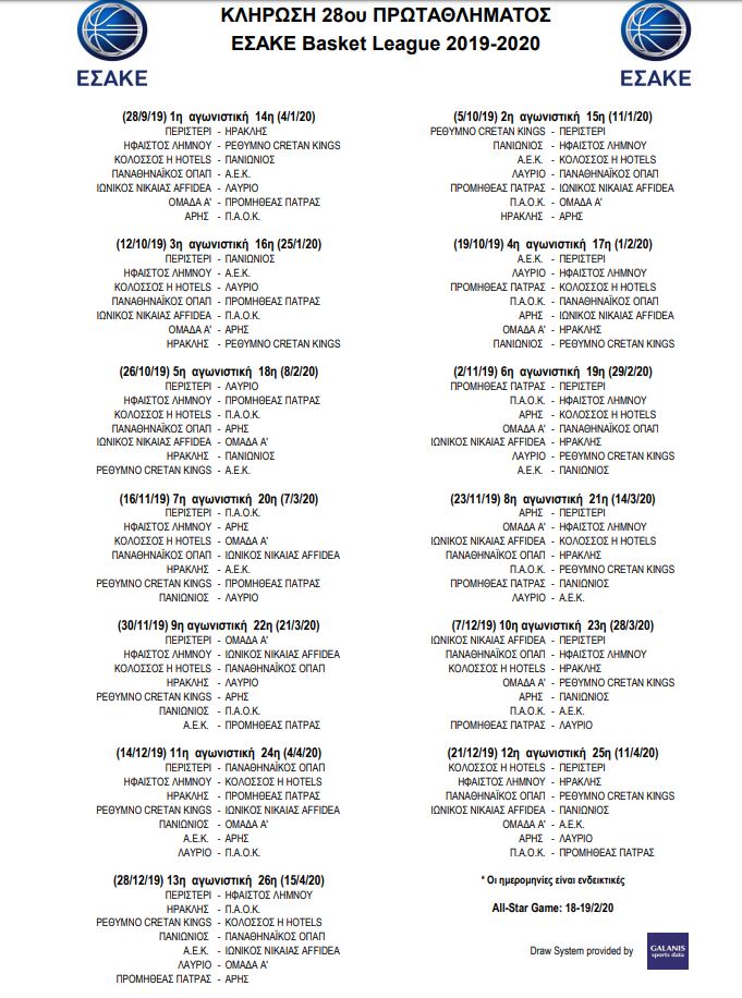 Δείτε το πρόγραμμα της Basket League για τη σεζόν 2019-2020