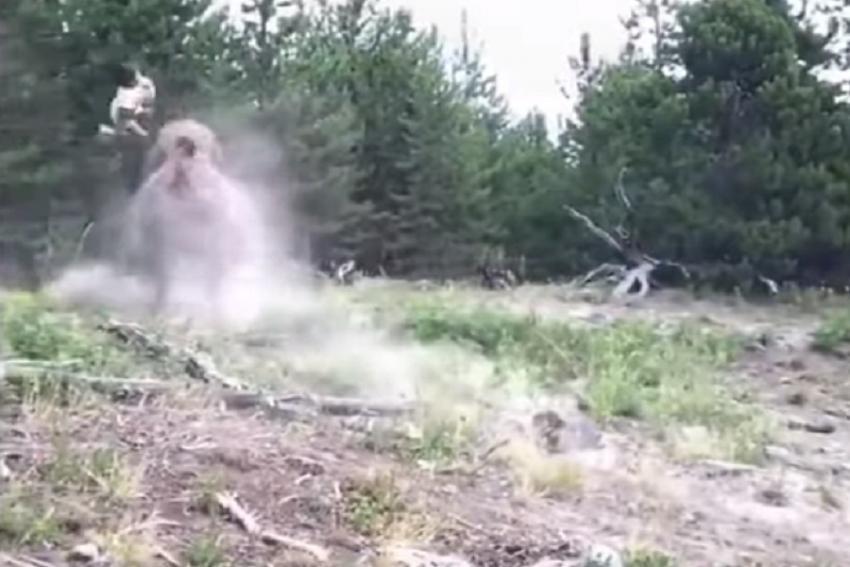 Όπως φαίνεται στο βίντεο, το ζώο αρχίζει να κυνηγά μια οικογένεια, με τους γονείς να τρέχουν να ξεφύγουν σε αντίθετη κατεύθυνση από το παιδί τους, το οποίο ο βίσονας χτυπάει, εκτοξεύοντάς το στον αέρα.
