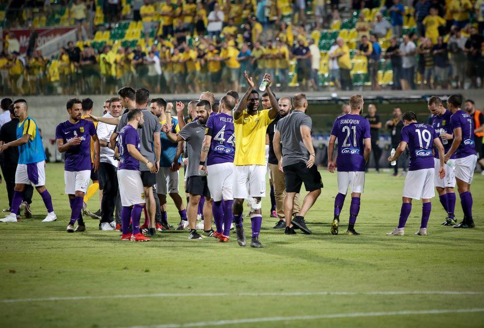 Έξαλλα πανηγύρισαν οι παίκτες του Άρη την πρόκρισή τους στον γ’ προκριματικό γύρο του Europa League μετά τη νίκη με 1-0 επί της ΑΕΛ στη Λάρνακα.