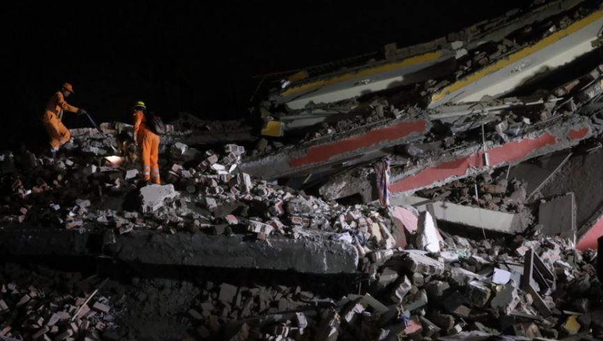Στο σημείο έχουν σπεύσει πάνω από 100 μέλη σωστικών συνεργείων με γερανούς και ειδικά εργαλεία απεγκλωβισμού, ενώ ομάδες με ειδικά εκπαιδευμένα σκυλιά προσπαθούσαν όλη νύχτα να εντοπίσουν τους ανθρώπους κάτω από τα συντρίμμια.