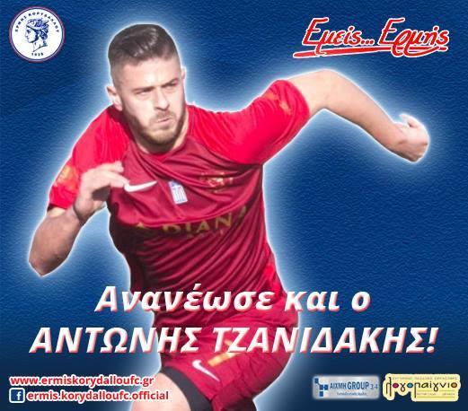 «Το Δ/Σ του ΕΡΜΗ ΚΟΡΥΔΑΛΛΟΥ ανακοινώνει την ανανέωση της συνεργασίας της ομάδας μας με τον 23χρονο επιθετικό ΑΝΤΩΝΗ ΤΖΑΝΙΔΑΚΗ.