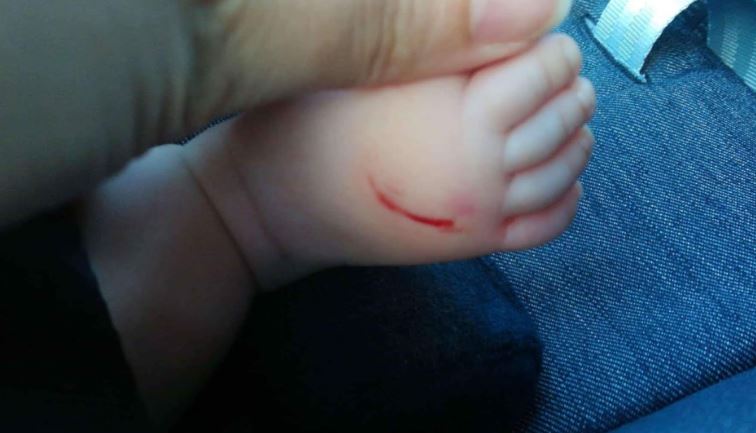 Σύμφωνα πάντα με την καταγγελία, η άγνωστη γυναίκα πλησίασε τη μητέρα που κρατούσε αγκαλιά το μόλις δυόμισι μηνών μωρό της και το τραυμάτισε. Η μητέρα του μωρού δεν κατάλαβε αμέσως τι έγινε, παρά μόνο όταν το μωρό άρχισε να κλαίει είδε τα πόδια του που ήταν ματωμένα.