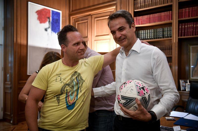 Στο Μέγαρο Μαξίμου υποδέχτηκε ο Κυριάκος Μητσοτάκης τα μέλη της Εθνικής Αστέγων ποδοσφαίρου. Η ομάδα επέστρεψε την Κυριακή από το Κάρντιφ της Αγγλίας, όπου συμμετείχε στο Παγκόσμιο Κύπελλο Αστέγων και την Δευτέρα συναντήθηκε με τον Έλληνα πρωθυπουργό που δεν έκρυψε την χαρά του για αυτήν την συνάντηση.