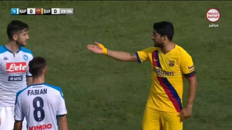 Τι κι αν ήταν φιλικό, Κώστας Μανωλάς και Λουίς Σουάρες δεν δίστασαν στη διάρκεια της αναμέτρησης της Νάπολι με την Μπαρτσελόνα να γίνουν πρωταγωνιστές για έναν όχι αγωνιστικό λόγο.
