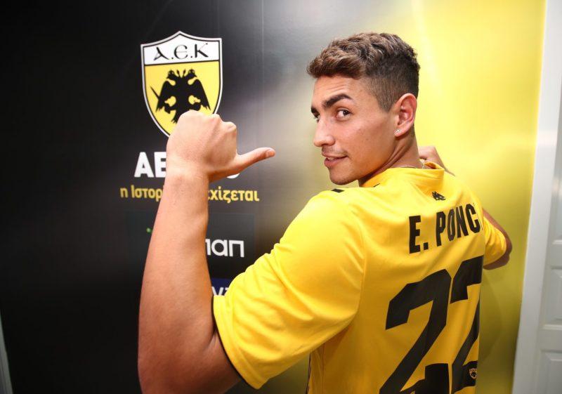 Η ΠΑΕ ΑΕΚ δημοσίευσε στην επίσημη σελίδα της στο facebook τις πρώτες φωτογραφίες του Έκι Πόνσε με φανέλα και κασκόλ της ομάδας, κατά τη διάρκεια που βρέθηκε στα γραφεία της διοίκησης προκειμένου να υπογράψει το συμβόλαιό του.