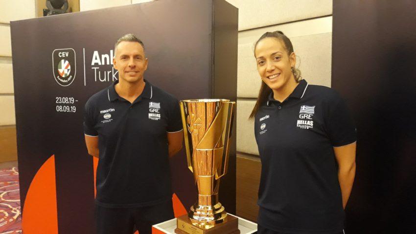 Περισσότερο …θαρραλέα εμφανίστηκε η αρχηγός Στέλλα Χριστοδούλου η οποία και άγγιξε αλλά και φωτογραφήθηκε πολλάκις με το βαρύτιμο τρόπαιο. Όταν μάλιστα στήθηκε μπροστά στα μικρόφωνα των Τούρκων συναδέλφων που της ζήτησαν δήλωση, δεν κρύφτηκε πίσω από το δάκτυλό για τους αντιπάλους στον όμιλο. «Σεβόμαστε την Τουρκία, σεβόμαστε την Σερβία, την Βουλγαρία, όλες τις ομάδες του ομίλου αλλά δεν φοβόμαστε καμία. Εμείς πρέπει να κάνουμε αυτά που πρέπει να κάνουμε μέσα στο γήπεδο και ότι είναι να γίνει θα γίνει. Για μας είναι επιτυχία που μετά από 18 χρόνια βρισκόμαστε και πάλι στα ευρωπαϊκά γήπεδα αλλά δεν σταματάμε εκεί. Στόχος μας είναι η πρόκριση στις 16 καλύτερες ομάδες της διοργάνωσης και αυτό θα προσπαθήσουμε να πετύχουμε».