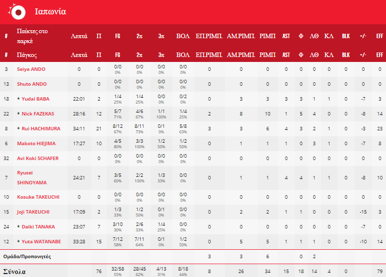 Ο Μπόχατσικ με 22 πόντους ήταν εκείνος που ξεχώρισε από τους νικητές, ενώ μόνος του πάλευε ο Χατσιμούρα με 21 πόντους για την Ιαπωνία.