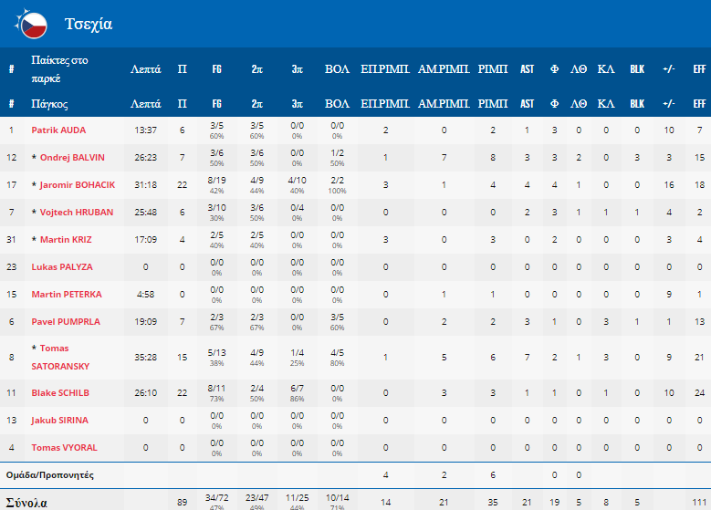 «Κλειδί» της αναμέτρησης ήταν η ευστοχία των Τσέχων από τα 6.75, έχοντας 44 % στη σχετική κατηγορία, την ώρα που αντίπαλοί τους υπέπεσαν σε 14 λάθη, δίνοντας μερικές επιπλέον επιθέσεις στο σύνολο του Γκίντζμπουργκ.