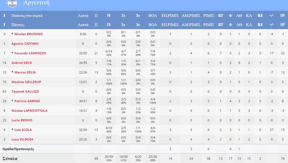 Οι Ρώσοι μπήκαν πολύ καλύτερα, αλλά χάρη στον Λουίς Σκόλα και την ευκολία που έβρισκε καλάθι, η Αργεντινή έφτασε στην ανατροπή στο τέλος του δευτέρου δεκαλέπτου (33-39) και άνοιξε τη διαφορά με την έναρξη του δευτέρου ημιχρόνου, φτάνοντας στο +13 (40-53). Τελικά, αν και το παιχνίδι πήγε να γίνει… ντέρμπι στο τέταρτο δεκάλεπτο, ο Καμπάτσο που ήταν και ο MVP της αναμέτρησης έφερε δίκαια τη νίκη στην ομάδα του με 69-61.