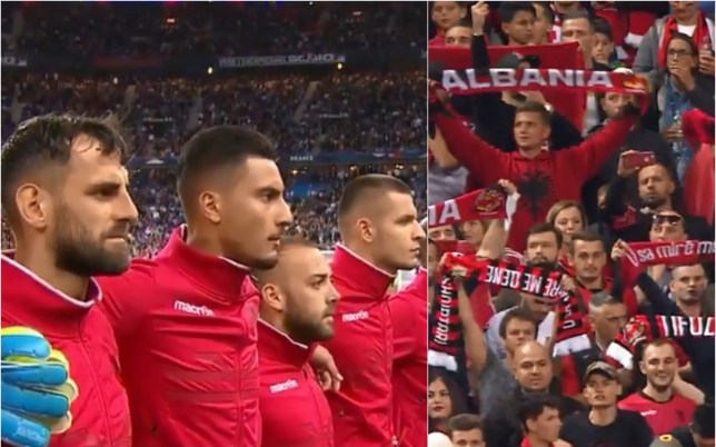 Αρχικά ακούστηκε εκείνος των γηπεδούχων, ενώ στη συνέχεια ήταν η σειρά των φιλοξενούμενων. Για κακή τύχη των τελευταίων, όμως, οι διοργανωτές έπαιξαν τον εθνικό ύμνο της Ανδόρας, με αποτέλεσμα οι Αλβανοί είτε να κοιτούν αμήχανα την κάμερα, είτε να χαμογελούν με το ευτράπελο που μόλις είχε λάβει χώρα.