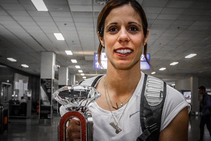 Η Ελληνίδα αθλήτρια, που έγινε έτσι η πρώτη που έφτασε σε αυτόν τον αριθμό διαμαντιών, πάτησε το πόδι της στο «Ελευθέριος Βενιζέλος», συνοδευόμενη από στον σύζυγο και προπονητή της, ούσα εμφανώς χαρούμενη.