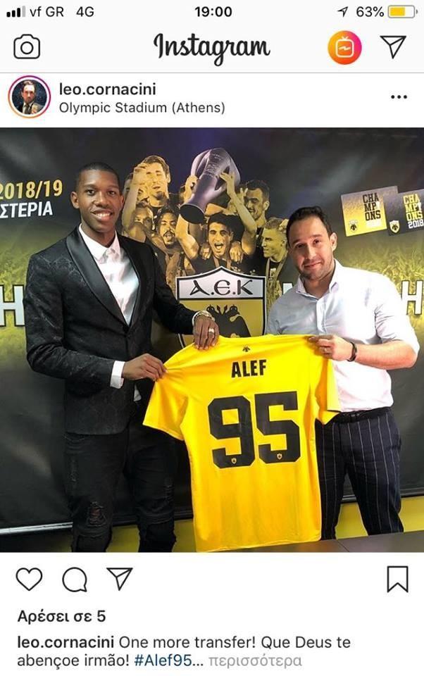 Τον αριθμό «95» θα έχει στην πλάτη της φανέλας του ο Άλεφ στην ΑΕΚ. Ο Λέο Κορνατσίνι, μάνατζερ του ποδοσφαιριστή, δημοσίευσε στον προσωπικό του λογαριασμό στο Instagram φωτογραφία του νέου αποκτήματος του «Δικέφαλου» κατά τη διάρκεια της παρουσίας του στα γραφεία της «κιτρινόμαυρης» ΠΑΕ για την υπογραφή του συμβολαίου του.