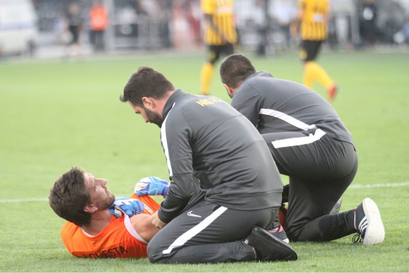 Οι τελευταίοι άκουσαν στη διάρκεια του πρώτου ημιχρόνου τον Ισπανό κίπερ να διαμαρτύρεται για ενοχλήσεις στην ωμοπλάτη, οι οποίες τον οδήγησαν τελικά στην αντικατάστασή του στην ανάπαυλα. Ο έμπειρος άσος τραυματίστηκε έπειτα από ένα φάουλ του Άκπομ λίγο πριν το 20λεπτο και παρά τους πόνους που ένιωθε δεν θέλησε να αποχωρήσει πριν από τη λήξη των πρώτων 45′.